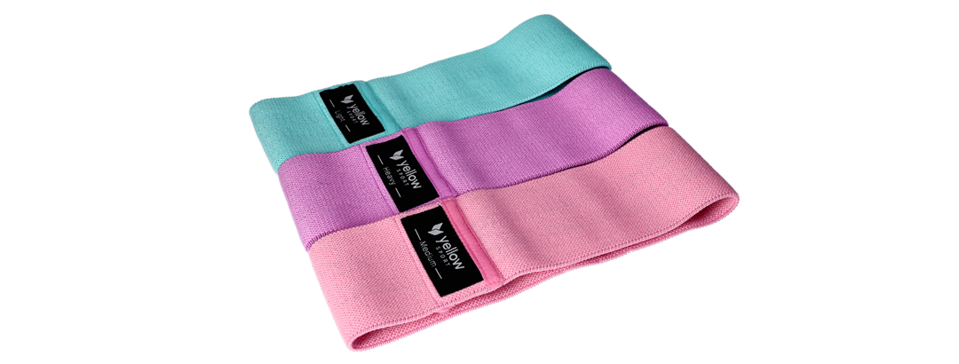 yellowHIP Bands consist of three fabric bands with an anti-slip finish. They come in three resistance levels (light, medium, and strong), allowing for progressive development in strength and functional training. These bands are excellent for glute activation and core workouts.